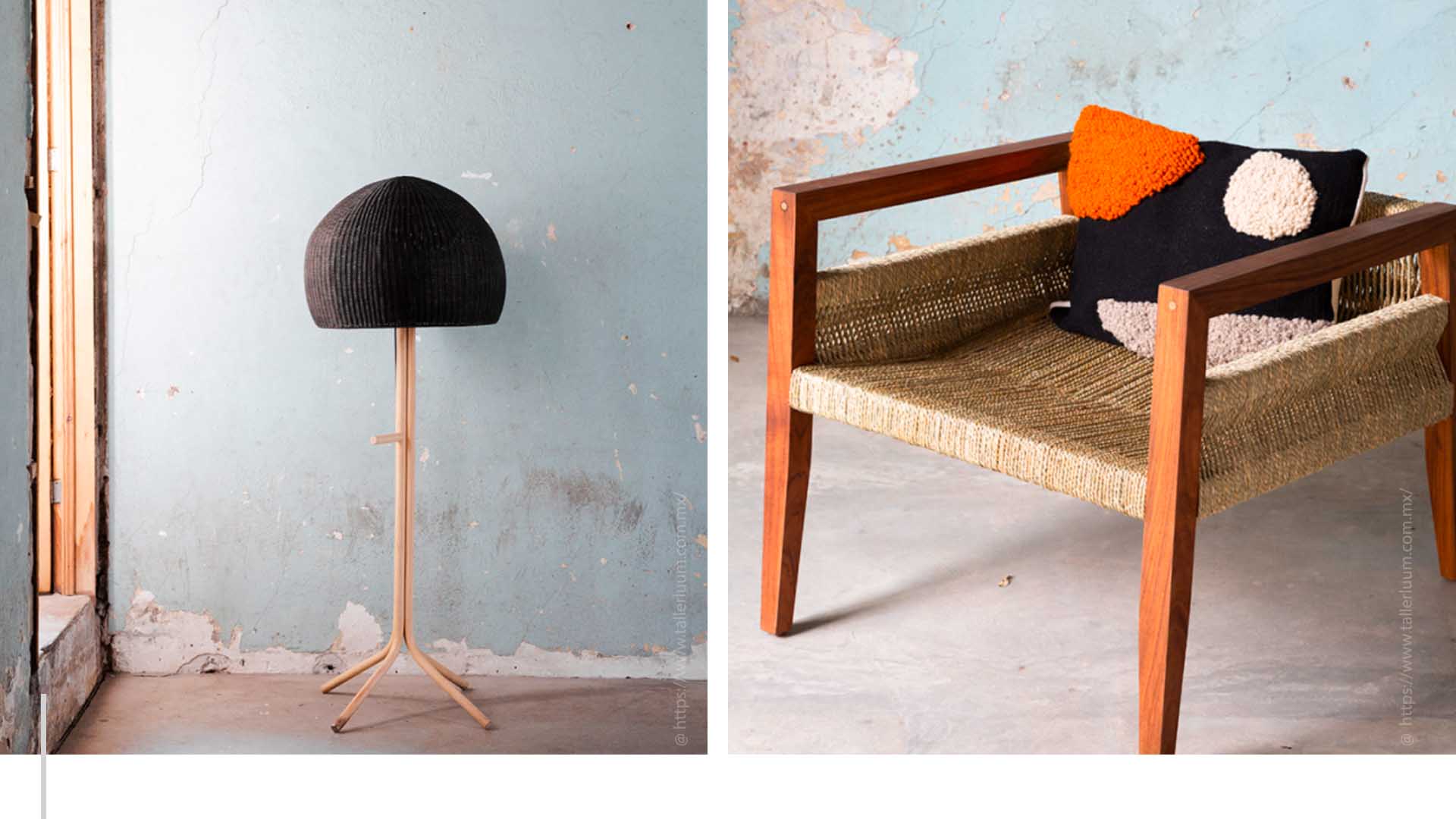 Este proyecto creativo se concibe como un puente de colaboración entre comunidades de artesanos de Puebla, Oaxaca, Querétaro y Michoacán, y diseñadores establecidos en la Ciudad de México. Todos sus objetos se crean a partir de materiales naturales orgánicos, como el espejo Madera, hecho con maderas preciosas recuperadas de árboles tirados por huracanes en la selva de Bacalar. O la lámpara Zitella, hecha a mano con tejido de ratán y mimbre en una comunidad de Tequisquiapan, en Querétaro.