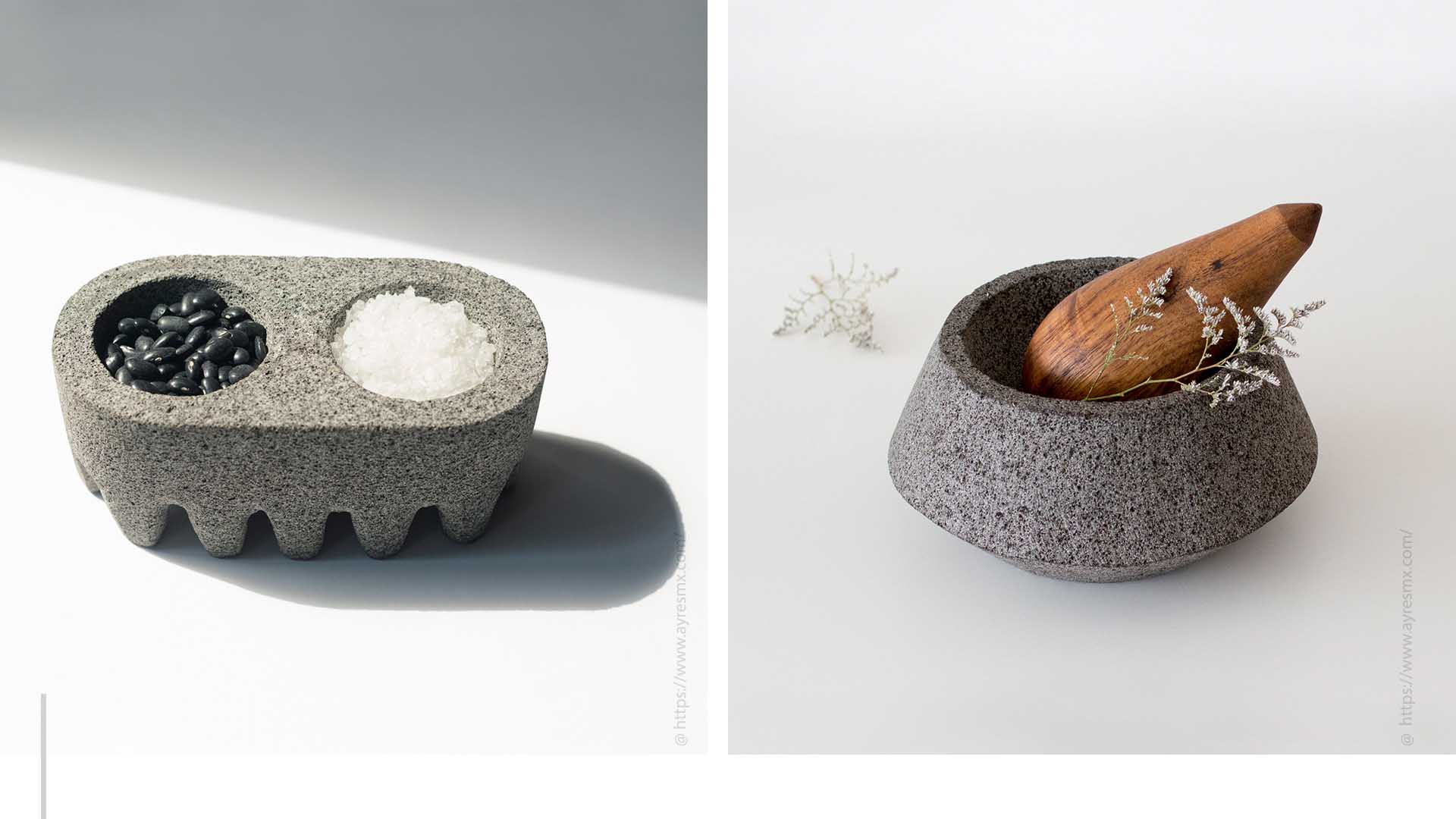 Joana Valdéz, diseñadora industrial de Yucatán, y Karim Molina, diseñadora textil de Caracas, Venezuela, son las mentes creativas detrás de esta marca de diseño inspirada en utensilios prehistóricos. Ambas colaboran con artesanos de Yucatán, Veracruz y Puebla, con quienes han establecido una relación de comercio justo. ¿Su filosofía? “Todos merecemos tener objetos especiales que cuenten una historia”. En su tienda encuentras bandejas, cuchillos y vasitos mezcaleros hechos con materiales como maderas tropicales, piedra volcánica, y mármol blanco o negro.