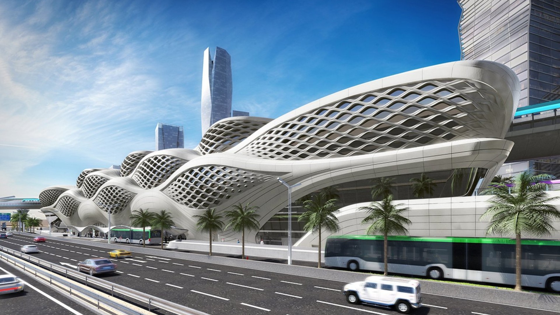 Diseñado por el despacho de arquitectos Zaha Hadid, este complejo albergará seis líneas y supone una transformación total del sistema de transporte público en la ciudad de Arabia Saudí. En sus 45,000 metros cuadrados de construcción cuenta con seis plataformas (una para cada línea) y dos pisos de estacionamiento, cubiertas por una estructura de metal de 4,237 toneladas que forma un patrón semejante a las ondas que se forman en las dunas del desierto y a la vez que permitirá la reducción de calor al interior. Está previsto que termine su construcción en el último trimestre del año.